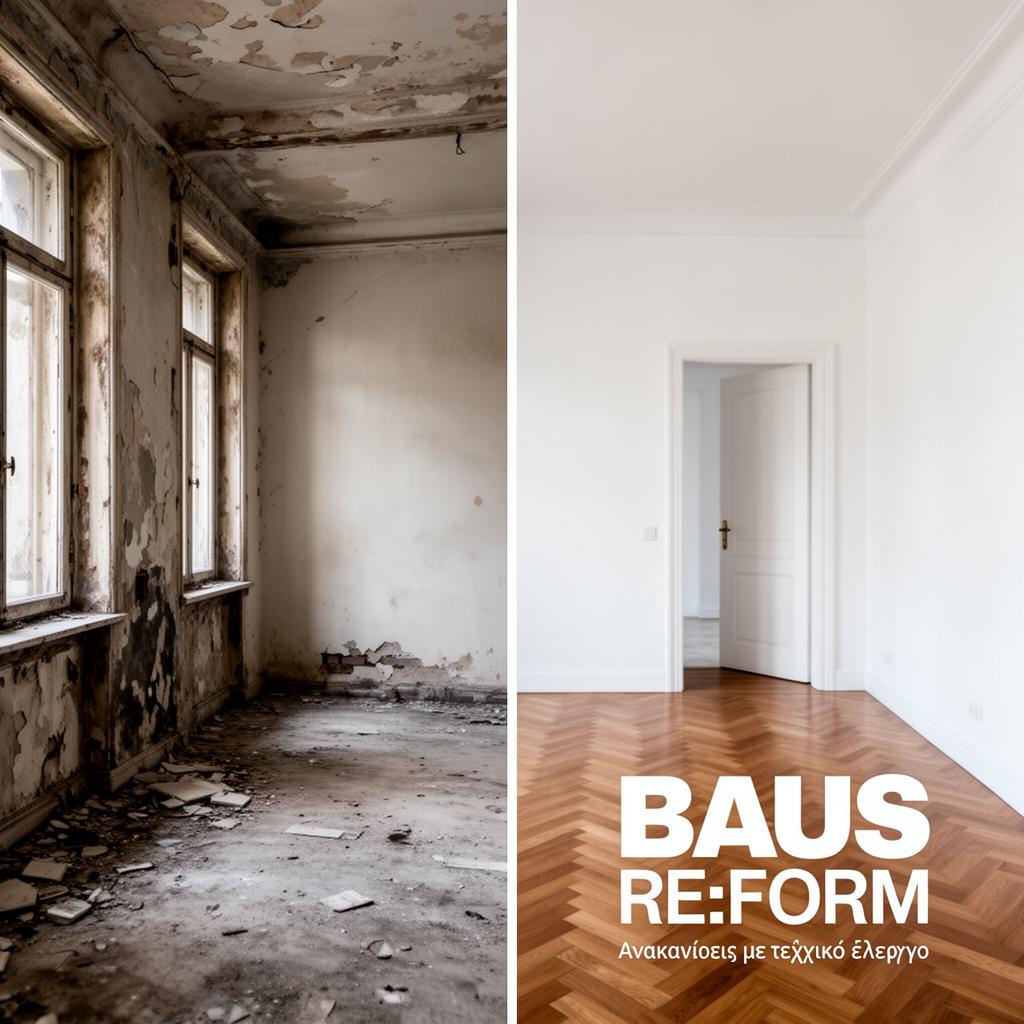 Στην BAUS RE:FORM προσεγγίζουμε την ανακαίνιση ως τεχνική πράξη που απαιτεί γνώση, κρίση και ευθύνη. Κάθε έργο ξεκινά από ουσιαστική κατανόηση της κατασκευής και του τρόπου χρήσης του χώρου.